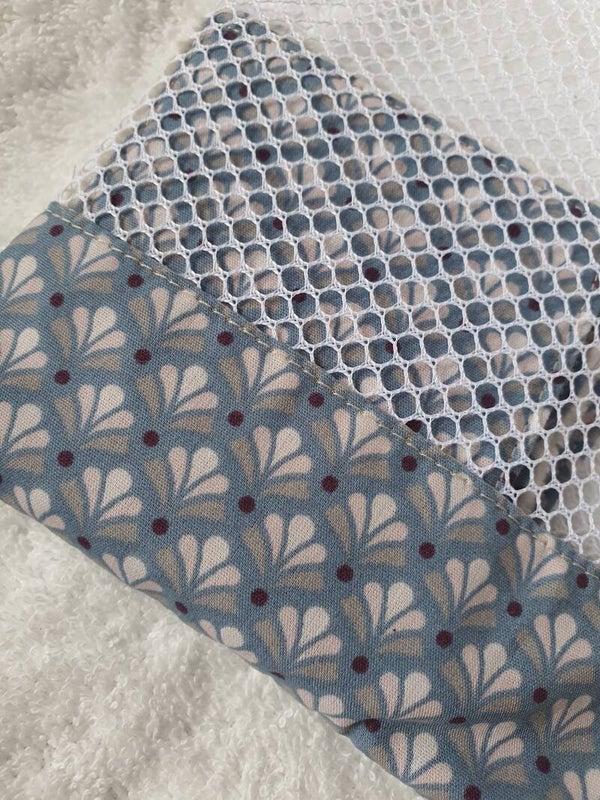 une face en tissu imprimé et l'autre face en éponge de bambou beige